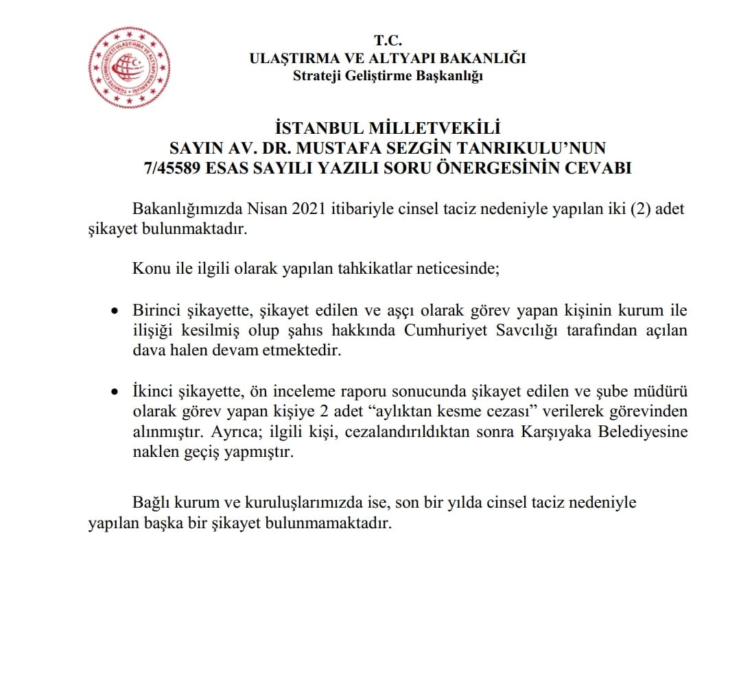 AK Parti Karşıyaka İlçe Başkanı Didem Dereboylu Keseli, TBMM'deki bir soru önergesine verilen cevaba göre Karşıyaka Belediyesi'nde daha önce Ulaştırma ve Altyapı Bakanlığı'ndan taciz suçlamasıyla atılan bir kişinin çalıştırıldığını söyledi. Keseli bu ifadeyi doğrudan Karşıyaka Belediye Başkanı Cemil Tugay'a sordu.