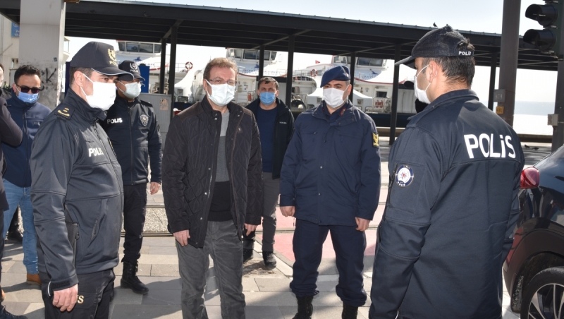 Hijyen, maske, sosyal mesafe, insan hareketliliğini en aza indirmenin salgının etkisini azalttığını belirten Kaymakam Çalışır, kurallara uydukları için Karşıyakalılara da teşekkür etti, görevli emniyet güçlerini de ziyaret ederek, onlarla bir süre sohbet etti.