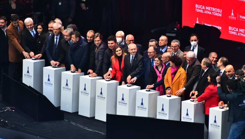 İzmir tarihi bir güne tanıklık etmenin gururunu yaşıyor. Kentin en büyük yatırımı Buca Metrosu’nun temeli bugün Buca Şirinyer’de kurulan tören alanında Cumhuriyet Halk Partisi (CHP) Genel Başkanı Kemal Kılıçdaroğlu tarafından atıldı. Törene Kılıçdaroğlu’nun yanı sıra ev sahibi İzmir Büyükşehir Belediye Başkanı Tunç Soyer ve eşi Neptün Soyer, CHP yönetimi, milletvekilleri, ilçe belediye başkanları, partilerin il başkanları, meslek odalarının, sendikaların, kooperatiflerin, sivil toplum örgütlerinin temsilcileri ve on binlerce İzmirli katıldı.