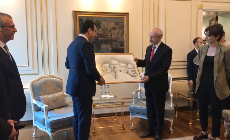Öte yandan görüşmede Kılıçdaroğlu'na kara kalem bir çizim hediye eden Ekrem İmamoğlu, kara kalem çizimi yapan ressamın "Kağıdım bu kadardı, çizemediklerim kusura bakmasın" dediğini aktardı.