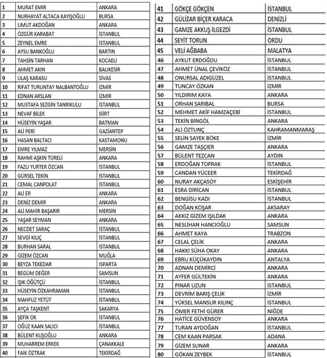 Sivas Milletvekili Ulaş Karasu, Kastamonu Milletvekili Hasan Baltacı, Samsun Milletvekili Neslihan Hancıoğlu, Bursa Milletvekili Nurhayat Kayışoğlu, Balıkesir Milletvekili Ahmet Akın, Niğde Milletvekili Ömer Fethi Gürer ve Kahramanmaraş Milletvekili Ali Öztunç listede yer alan isimler oldu.