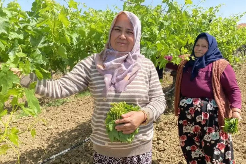 Manisa'nın Alaşehir ilçesinde, dünyaca ünlü Sultaniye üzümünün hasat dönemi yaklaşırken, üzüm üreticileri için asma yaprağı önemli bir gelir kaynağı haline geldi. Üreticiler, sabahın erken saatlerinde bağlardan topladıkları yaprakları toptancılara satarak günlük ihtiyaçlarını karşılıyor. Toptancılara kilosu 70 TL'den satılan yapraklar ise pazarda 200 TL'ye kadar alıcı buluyor.