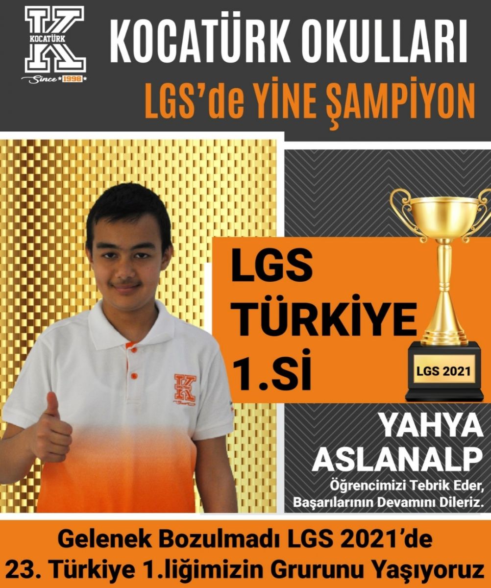 Eğitim dünyasına adını altın harflerle yazdırmış olan Kocatürk Okulları’nda gelenek yine bozulmadı. 23 yıllık eğitim alanındaki tecrübesiyle LGS’de 23. kez 500 tam puan alan Kocatürk Okulları, 2021 LGS Türkiye birinciliğini kutladı.
