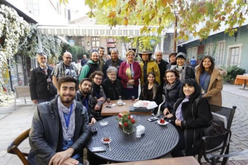 Müze turlarının ardından tarihi Agora Kazı Alanı’nı gezen yabancı sanatçılar bir yandan antik İzmir kent yaşamına dair fikir edinirken bir yandan da kendi sanatlarını besleyecek önemli bir tarihi kaynağı incelemiş oldu. Agora gezisinin ardından yemek için Kemeraltı Çarşısı’na geçen yabancı heyet, Konak Belediye Başkanı Sema Pekdaş’ın konuğu oldu. Restorasyonu Konak Belediyesi’nce yaptırılan Tarihi Abacıoğlu Han'da verilen yemek molasında yabancı sanatçılara geleneksel Türk Mutfağı ve Balkan Mutfağı'nın lezzetli yemekleri ikram edildi. Heyet keyifli geçen yemeğin ardından dibekte pişen Türk kahvesini yudumladı.