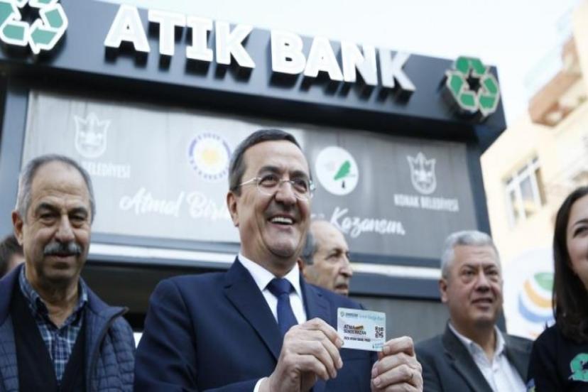 Konak Belediyesi’nin Mensan Geri Dönüşüm işbirliğiyle, ilçede pilot bölge olarak seçilen 5 ayrı mahallede kurduğu atık toplama üniteleri hizmete açıldı. “Atık Bank” olarak isimlendiren üniteleri, düzenlediği basın toplantısında Konaklıların hizmetine sunan Konak Belediye Başkanı Abdül Batur, çevreye duyarlılığın bir belediyenin en büyük sorumluluklarından biri olduğuna dikkat çekerek, “Konak Belediyesi’nde de bu bilinçle hareket ediyoruz. Daha önce evlerde biriken ilaçları çöpe atılmadan toplayarak imha etmek ve elektronik atıkların geri dönüşüme kazandırmak için iki ayrı çalışma başlatmıştık. Bu iki projemizi başarıyla sürdürüyoruz. Ve şimdi Konak için büyük bir adım daha attık: İzmir’de geri dönüşümde bir ilk olan projemizi hayata geçirerek, Konak’ta “Atık Bank” dönemi başlattık” diye konuştu.