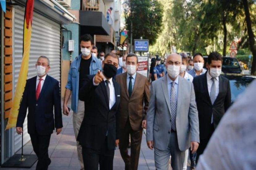 İçişleri Bakanlığı’nın Covid-19 konulu ek genelgesi kapsamında geçtiğimiz hafta Konak Kemeraltı Çarşısı ile Konak Pier’de yapılan kapsamlı denetimin ardından bugün de Konak Karataş Semti’ndeki esnaf denetimden geçirildi. Denetimlere İzmir Valisi Yavuz Selim Köşger, Konak Kaymakamı Mehmet Eriş, İl Sağlık Müdürü Mehmet Burak Öztop, Konak Belediye Başkanı Abdül Batur, Konak İlçe Emniyet Müdür Vekili Vedat Yaylalı, ilgili tüm kamu kurum ve kuruluşlarının yöneticileri ve personeli katıldı.