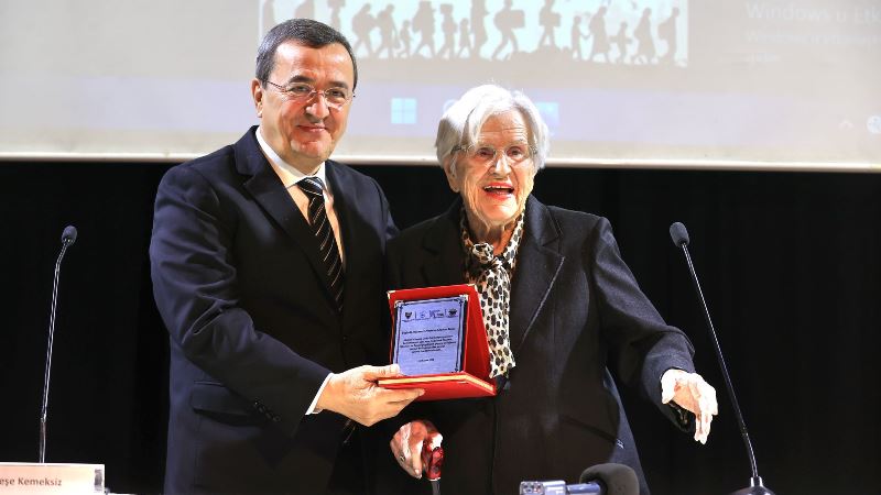 Sempozyumun açılışında konuşan Prof. Dr. Nermin Abadan Unat da kendi hayat ve göç hikayesini anlattı. Budapeşte’den Türkiye’ye uzanan göçünün bir serüven olduğunu ve bu serüvenin mutlu sonlandığını ifade eden Unat, “Evvela ben bir göç çocuğuyum. Annem Alman olduğu için ben yurtdışında Avusturya’da, Viyana’da doğdum. Birkaç dil öğrendim ama Türkçeyi öğrenemedim. Okula gönderildim. Bir süre sonra paralı olan okula beni gönderemeyeceklerini, sekreter olabileceğimi söylediler. Ben daha fazlasını istiyordum, okumak istiyordum. Atatürk’ün hem kız hem erkek çocuklarına parasız eğitim sağladığını okudum, bu benim için son derece mühim oldu. ‘Demek ki babamın ülkesinde olsam okula gidebileceğim’ dedim. Bulunduğum Budapeşte’de o sırada bulunan büyükelçiye gittim ve İzmir’deki amcama bir mektup yazmasını istedim. İzmir’e geldim. Benim için göç bir serüvendi ama güzel bitti. Ben yurduma kavuştum” diye konuştu.