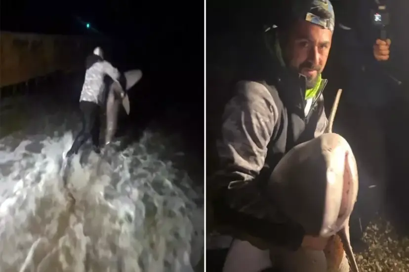 Antalya'nın Manavgat ilçesinde profesyonel balıkçılık yapan Savaş Dursun'un kıyıdan denize saldığı oltaya yaklaşık 50 kiloluk köpek balığı takıldı. Köpek balığını denize girip kıyıya çıkaran Dursun, balığı bir süre inceledikten sonra kucağına alıp denize tekrar saldı. Dursun'un o anları komedi filmi Recep İvedik'in köpek balığı sahnesini hatırlattı.