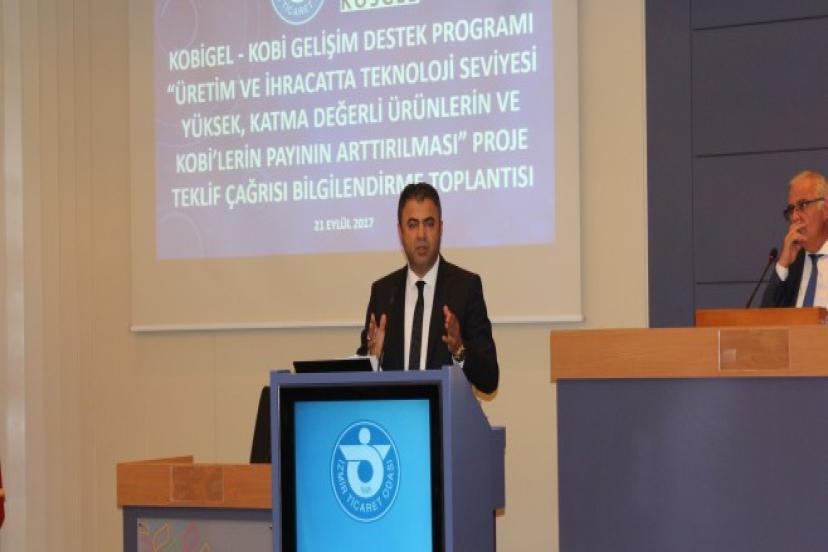 KOSGEB “İmalat Sanayi” sektörüne yönelik “Üretim ve İhracatta Teknoloji Seviyesi Yüksek, Katma Değerli Ürünlerin ve KOBİ’lerin Payının Artırılması” başlığında 8 farklı konuda proje teklif çağrısına çıktı. Ülke genelinde 500 milyon liralık destek verilecek projenin tanıtım toplantısı İzmir Ticaret Odası'nda düzenlendi. Toplantıda KOSGEB Güney Müdürü Mustafa Çanakçı ile Kuzey Müdürü Levent Arslan, desteklerden faydalanmak isteyen KOBİ temsilcilerine bilgi verdi.