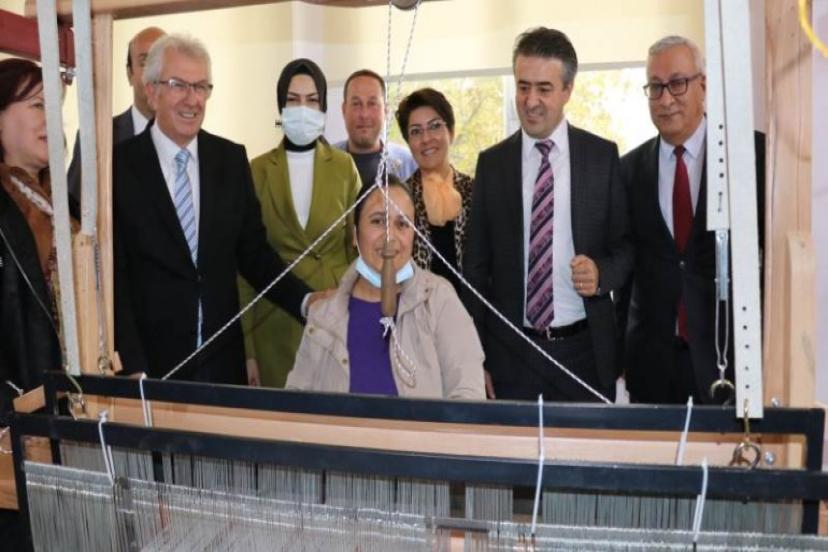 2019 yılında Ödemiş İlçesi Zeytinlik Mahallesinde Belediyeye ait binada Bakanlığımız tarafından tadilatı gerçekleştirilerek oluşturulan İpek Böceği Besleme Evine proje bütçesinden 72 bin TL değerinde 5 adet dokuma makinası alınımı gerçekleştirildi ve Dokuma Evi olarak kullanımına başlandı” dedi.
