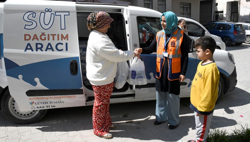 Sosyal belediyecilik alanında yaşama geçirdiği çalışmalarla dikkat çeken Kuşadası Belediyesi, yüksek enflasyon nedeniyle alım gücü giderek düşen dar gelirli kesimlerin 2-5 yaş arasındaki çocuklarına aylık 8 litre süt, okula giden 6-14 yaşlarındaki çocuklarına ise 5 günlük beslenme paketi desteğinde bulunuyor. Geçtiğimiz ay başlatılan projelerde süt desteği, sağlıklı ve geri dönüştürülebilir 1 litrelik tetra pak ambalajlar içerisinde süt dağıtım araçları tarafından, içerisinde sandviç ekmeği, çiğ kuruyemiş, mevsim meyvesi, su, süt veya meyve suyu bulunan beslenme paketleri ise kent genelinde oluşturulan dağıtım noktalarında ailelere teslim ediliyor.