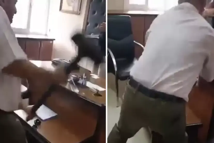 İzmir'in Çiğli ilçesinde öfkelenen sendika temsilcisi, müdür odasına balyozla dalarak masayı parçaladı, ortalığı savaş alanına çevirdi.