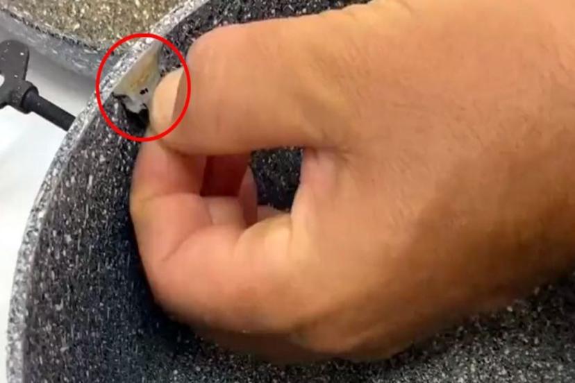 Görüntüde dışarıdan tamamen granit gibi duran tencerenin, aslında bir folyo ile kaplandığı görülüyor. Videoyu çeken vatandaşın eliyle soyduğu yerlerin ısı nedeniyle eridiği anlaşılıyor. Bu kaplamaların yüksek sıcağa maruz kalması ise insan sağlığı üzerine olumsuz etki gösteriyor. Bu kaplama çeşidinde 250-300 derece sıcaklık zehir saçan plastik polimer maddesini ortaya çıkarıyor.