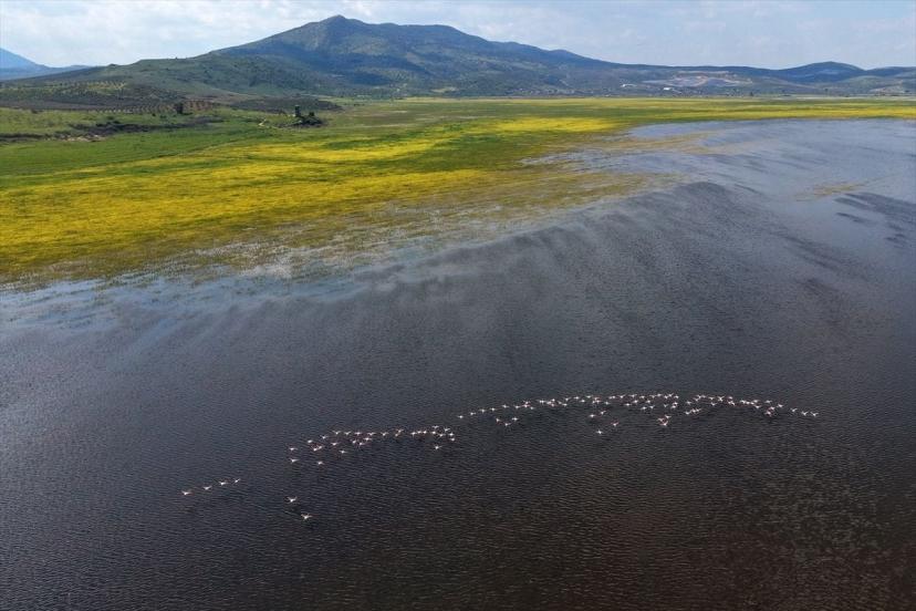 Anadolu'da "allı turna" olarak bilinen flamingolar, karabatak, balıkçıl ve birçok göçmen kuş türü yeniden bölgede görülmeye başladı.