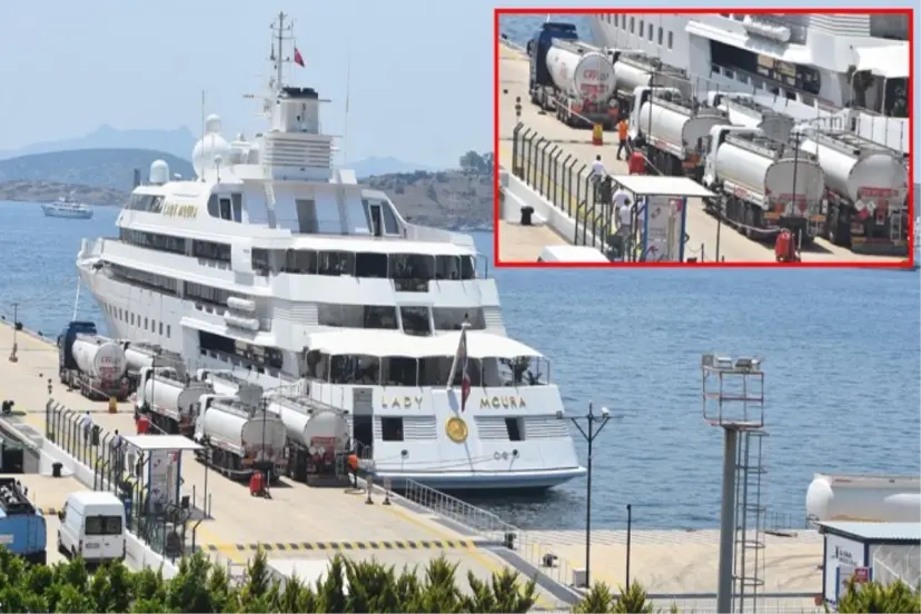 Muğla'nın Bodrum ilçesine demirli, Meksikalı iş insanı Ricardo Salinas Pliego'ya (67) ait 'Lady Moura' isimli lüks yata 16 milyon lira değerinde 600 ton yakıt alındı.