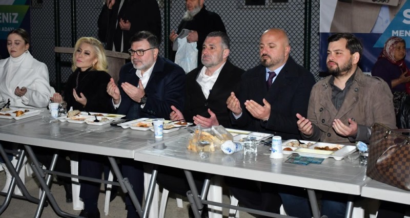 Menderes Belediye Başkan Adayı Sinan Akdeniz; son düzenledikleri iftar yemeğinde binlerce hemşehrisiyle buluştu. Menederesliler, AK Parti İzmir Milletvekili Şebnem Bursalı, İl Başkanı Bilal Saygılı ve MKYK Üyesi Emre Cemil Ayvalı’nın da katıldığı gönül sofrasına büyük ilgi gösterdi. Belediye Başkan Adayı Akdeniz; bu sofraları 1 Nisan’dan sonra da kuracaklarını söylerken; Bursalı, Saygılı ve Ayvalı ise önemli mesajlar verdi.