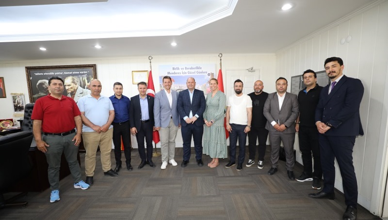 Menderes Belediyesi’nde kardeş belediye ziyareti gerçekleşti. Menderes Belediye Başkanı İlkay Çiçek, Almanya’nın Troisdorf Belediyesi’nin Belediye Başkanı Alexander Biber’i makamında ağırladı. İş birliği adına önemli konuların da masaya yatırıldığı toplantıda samimi diyaloglar ve eğlenceli anlar dikkat çekti. Başkan Çiçek, Başkan Biber’e kendisine ait olan Göztepe formasını hediye etti.