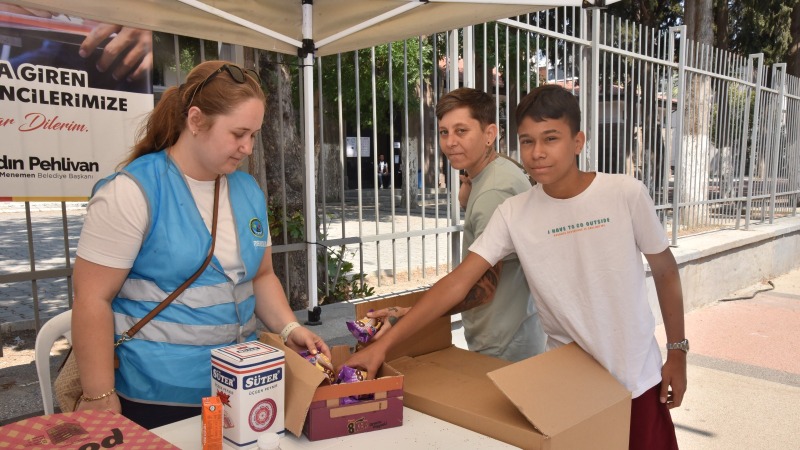 Hafta sonu gerçekleştirilen üniversiteye giriş sınavlarında, Menemen Belediyesi, ilçede sınavların gerçekleştirildiği okullarda öğrenci ve velileri yalnız bırakmadı. Belediyeye bağlı ikram araçlarından kahvaltılık, meyve suyu, kek ve su ikram edildi. Menemen Belediye Başkanı Aydın Pehlivan, "Yıl boyunca dağıttığımız dijital eğitim setleriyle, MEBGEM'in üç şubesiyle, sınav harcı ödemeleriyle öğrencilerimizin yanında olduk. Sınav günlerinde iki gün boyunca da ikramlarımızla bu birlikteliği sürdürdük. Sınav heyecanını sadece onlar değil aileleriyle birlikte bizlerde yaşadık. İnşallah öğrencilerimizin başarı haberlerini de hep birlikte alacağız." dedi.