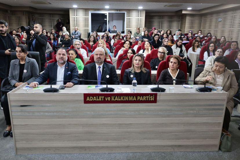 Alkışlı yürüyüş, Menemen Belediyesi önüne dek sürerken, günün ikinci programı ise Menemen Belediye Meclis Salonu'nda gerçekleştirildi. Menemen Belediye Meclis Üyeleri Av. Nevin Öztabak Yıldırım ve Av. Safiye İrem İncesu'nun 6284 Sayılı Kanun kapsamında Kadına Yönelik Şiddetle Mücadele hakkında sunum yaptığı programda Polis Memuru Merve Ulusu da, "Şikayet Başvuru Süreci Nasıl İşler?" konulu sunum gerçekleştirdi. Menemen Sosyal Hizmet Müdürlüğü İşleyişi ve ŞÖNİM sunumunun da yapıldığı toplantıda, Menemen Belediye Başkanı Aydın Pehlivan farkındalık mesajı verdi.