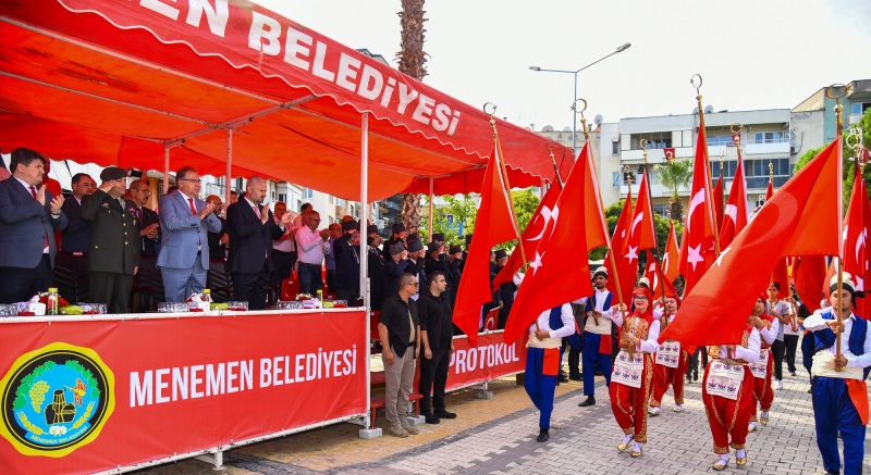 Konuşmanın ardından Menemen Belediyesi Halk Oyunları ekibi zeybek gösterisi sundu. Ellerinde Türk Bayrakları ile törene katılan Menemenliler de, Gazi Mustafa Kemal Atatürk ve mücadele arkadaşlarını bir kez daha sonsuz minnet ve saygıyla andı. Ardından Menemen’deki sivil toplum kuruluşları, kamu kurumları, çiftçiler, belediye araçları geçitte bir araya geldi.