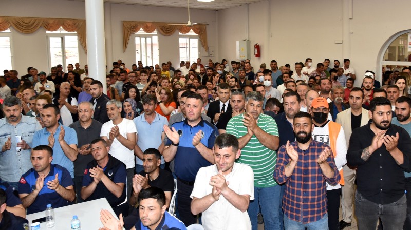Ramazan Bayramı’nın arifesi ve 1 Mayıs Emek ve Dayanışma Günü. Bu değerli günümüzü de şimdiden kutluyorum. Böylesine özel ve güzel 2 bayramın denk geldiği bir zamanda müjde vermemek olmazdı. Bayram ikramiyeleriniz bugün itibariyle hesaplarınıza yatmış olacak. Ananızın ak sütü gibi helal olsun. Sevdiklerinizle birlikte güle güle harcayın. Sizlerle çalışmaktan, aynı ekipte olmaktan, birlikte hemşehrilerimize hizmet etmekten dolayı çok mutluyum. Kıymetli varlığınızı, samimiyetinizi bana her zaman hissettirdiniz. İyi ki varsınız, var olun” diye konuştu.
