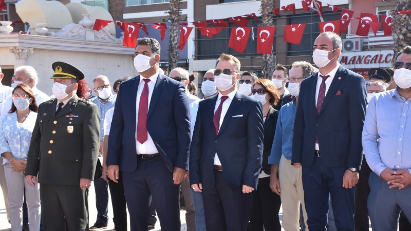 Çelenk sunum töreninde konuşan Menemen Belediye Başkanı Serdar Aksoy, “Bugün çok özel ve anlamlı bir gündür. Kurtuluş savaşı başladığı zamanlarda Ankara’da vatan şairi Namık Kemal, ‘Vatanın bağrına düşman dayadı hançerini. Yok mudur kurtaracak bu bahtı kara maderini’ der. Gazi Mustafa Kemal Atatürk’te cevap verir: ‘Vatanın bağrına düşman dayasın hançerini. Bulunur elbet kurtaracak bu bahtı kara maderini.’ Büyük Taarruz başladıktan sonra Gazi Mustafa Kemal bir sarı kurt gibi Sincan Ovası’na bakarken, o dönemin Yunan Komutanı Hagianesti için der ki ‘Hagianesti! Gel de ordularını kurtar.’ Çünkü iki günde koskoca Yunan ordusu Türk ordusu tarafından dağıtılmıştır. Geçilemez denen yerler geçilmiştir. Ayağında çarığı bile olmayan Mehmetçik 4 günde 500 km yol yürüyerek Yunan Ordusunu denize dökmüştür. İşte bu vatan, İzmir, Menemen böyle kurtarılmıştır. Dolayısıyla bunun değerini hepimizin çok iyi bilmesi gerekiyor” diyerek sözlerine başladı.