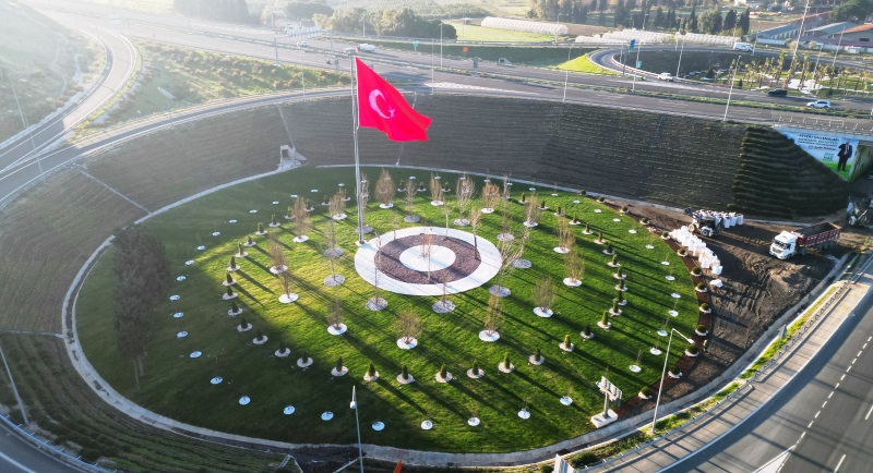 Çalışmalar kapsamda, Menemen Belediyesi Park ve Bahçeler Müdürlüğü ekipleri tarafından Koyundere Otoyol Kavşağı’nda yürütülen peyzaj düzenlemesi, dört bir yanında dalgalanan Türk Bayraklarının göndere çekilmesi ile sona erdi.