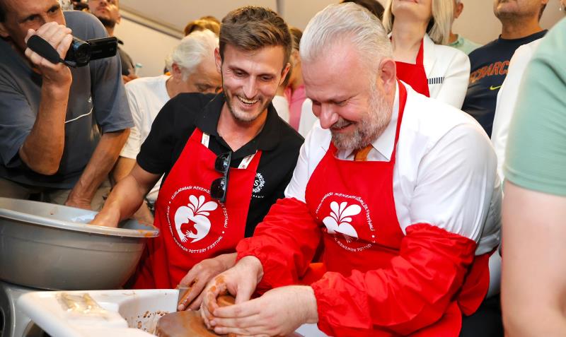 Açılış kurdelesinin kesilmesi ardından, Başkan Pehlivan ve davetliler çömlek yapım alanına geçerek çömlek yaptı. Açılış töreninde ateşin toprakla buluşmasının en görkemli hali olan raku gösterisine geçildi. Burada Başkan Pehlivan ve davetliler, dev çömleğin içindeki aleve toprak atarken, izleyenlere tam bir görsel şov ortaya çıktı.
