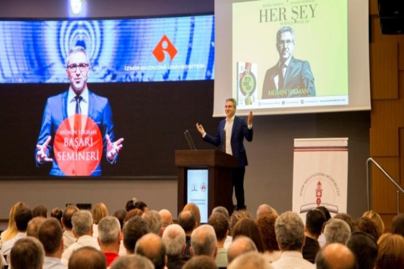 İzmir Ticaret Odası Konferans Salonundaokul müdürleriyle bir araya gelen Yazar Mümin Sekman “Her Şey Seninle Başlar: Eğitimde Başarı” konulu bir seminer verdi.