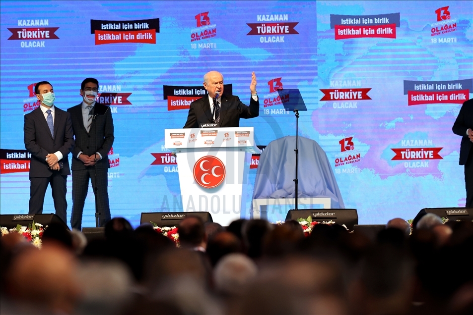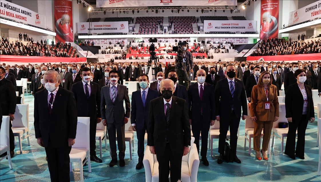 Milliyetçi Hareket Partisi (MHP), 13'üncü Olağan Kurultayı saat 10'da "İstiklal için birlik, istikbal için dirlik, kazanan Türkiye olacak" sloganıyla başladı ve sona erdi.