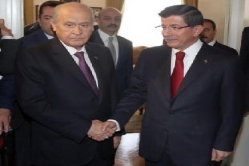 MHP ile görüşme sonrası ilk açıklama Koalisyon görüşmeleri kapsamında MHP Genel Başkanı Bahçeli ile bir araya gelen Davutoğlu, Bahçeli'nin koalisyonda olmayacağını söyledi.