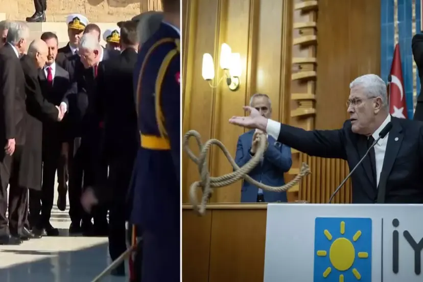 MHP Genel Başkanı Devlet Bahçeli'nin geçtiğimiz hafta terör örgütü PKK elebaşı Abdullah Öcalan'la ilgili yaptığı çağrı çok konuşuldu. "Gelsin TBMM'de DEM sıralarına katılıp silah bıraktığını ilan etsin, terörün tamamen bittiğini örgütün lağvedildiğini haykırsın." diyen Bahçeli'ye İYİ Parti Genel Başkanı Müsavat Dervişoğlu kürsüden idam ipi fırlattı. Bahçeli ise ipi alıp makam odasına astı. Dervişoğlu ile Bahçeli, Cumhuriyet Bayramı'nda Anıtkabir'deki törende ise el sıkıştı.