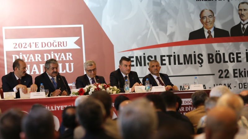 Milliyetçi Hareket Partisi (MHP) Genel Başkanı Devlet Bahçeli talimatlarıyla gerçekleştirilen “Diyar Diyar Anadolu Genişletilmiş Bölge İstişare Toplantısı” İzmir İl Başkanlığının ev sahipliğinde Balçova Termal Tesisleri Kardelen Salonu’nda gerçekleştirildi.Manisa, Aydın, Denizli, Uşak, Muğla ve Burdur İl Teşkilatlarının katılımıyla gerçekleştirilen toplantıya Genel Başkan Yardımcısı Fethi Yıldız Başkalık etti. MHP’nin TBMM Grup Başkan Vekili ve Manisa Milletvekili Erkan Akçay, Genel Sekreter Yardımcısı ve İzmir Milletvekili Tamer Osmanağaoğlu ve Genel Sekreter Yardımcısı Bahadır Bumin Özarslan da toplantı divanında yer alan isimlerdi. Toplantının açılış konuşmasını İzmir İl Başkanı Veysel Şahin yaparken Manisa Büyükşehir Belediye Başkanı Cengiz Ergün partililere hitap edenler arasındaydı.
