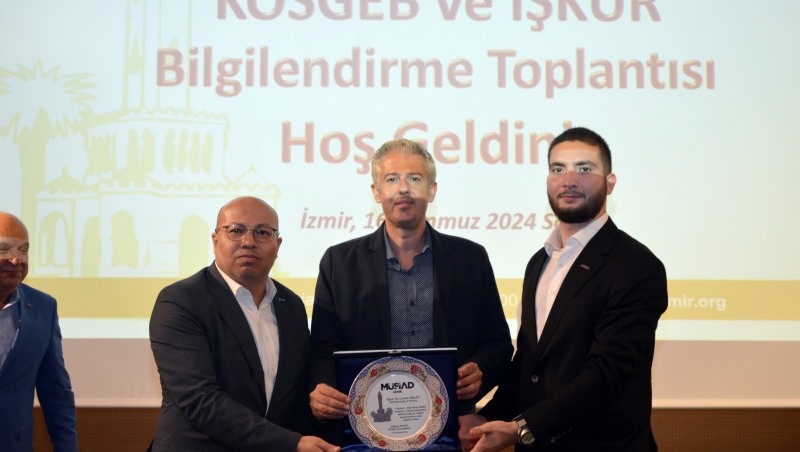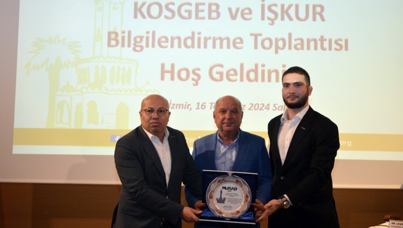 Müstakil Sanayici ve İşadamları Derneği (MÜSİAD) İzmir Şubesi tarafından düzenlenen toplantıda İzmir Çalışma ve İş Kurumu İl Müdürü Kadri Kabak ve KOSGEB İzmir İl Müdürü Dr. Levent Arslan MÜSİAD İzmir Üyeleri ile bir araya geldi.