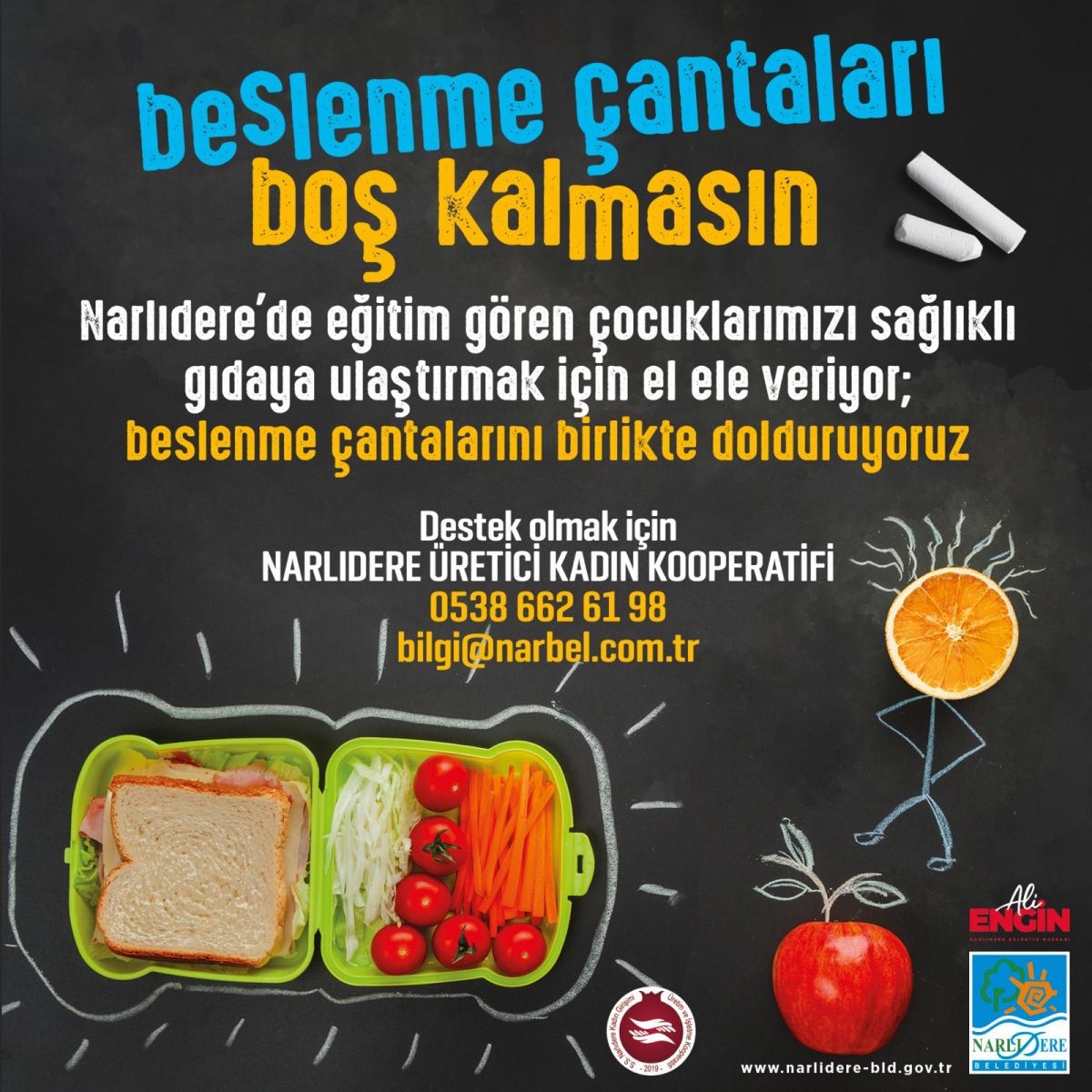 Ocak ayında hayata geçirmeyi planladıkları projeyi oldukça önemsediklerini ifade eden Narlıdere Belediye Başkanı Ali Engin, “Doğru ve dengeli beslenmenin her çocuğun temel hakkı olduğunu hepimiz bilmeli ve ona göre hareket etmeliyiz. Okul çağındaki evlatlarımızın sağlıklı ve dengeli beslenmesi geleceğimizin teminatı çocuklarımız için büyük önem arz ediyor. Çünkü doğru beslenme sadece beden sağlığını etkilemiyor aynı zamanda bilişsel becerilerin gelişmesini de sağlıyor. Yanlış ve eksik beslenme çocukların öğrenme güçlüğü yaşamasına neden oluyor. Biz de bu bilinçle hareket ederek ‘Narlıdere’de beslenme çantaları boş kalmasın’ diyor ve beslenme çantalarını birlikte dolduruyoruz” dedi.