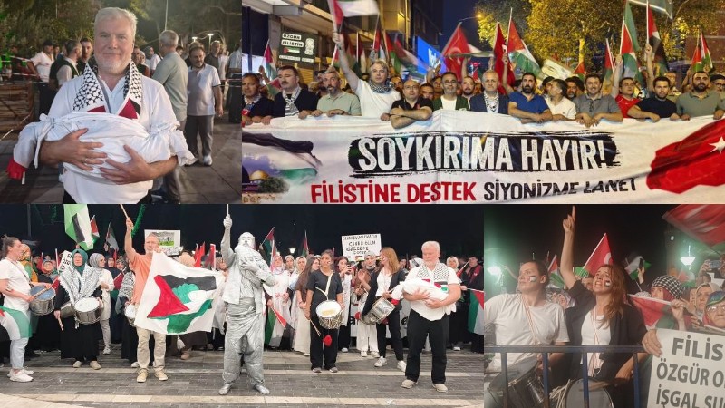 Bombalardan sağ çıkanların, açlıktan öldüğü Gazze soykırımı için vicdan ve erdem sahibi dünya halkları sokaklardaydı. Dünya halkları gıda yardımlarının yapılması ve soykırım zulmünün durdurulması için haykırdı. Dünya tarihinde eşine az rastlanan soykırım ve büyük trajediye karşı İzmirde de binlerce kişi İsrail soykırımını protesto etti. Filistinle dayanışma mesajı verdi. Dalga dalga küresel isyana dönüşen öfkenin sesi İzmir semalarında yankılandı.