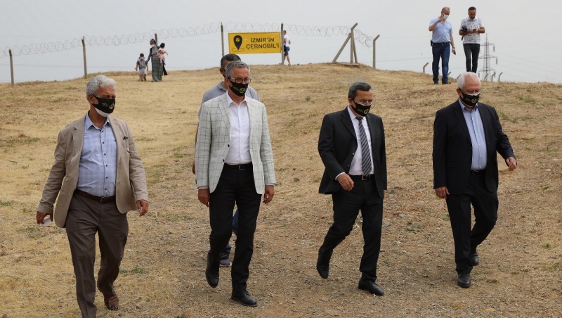 Gaziemir Emrez Mahallesi’ndeki İzmir’in Çernobil’i olarak bilinen radyoaktif atıkların alandan kaldırılması başlattığı duran adam eylemini İzmir Valiliği’nin aldığı eylem yasağı nedeniyle bu hafta yapmayan Belediye Başkanı Halil Arda, Karabağlar Belediye Başkanı Muhittin Selvitopu, Konak Belediye Başkanı Abdül Batur, CHP Karabağlar İlçe Başkanı Mehmet Türkbay ile birlikte alanı ziyaret etti.
