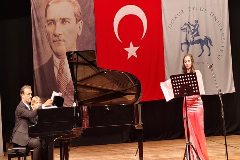 9 Eylül Üniversitesi Devlet Konservatuvarı Kurs koordinatörlüğü tarafından DEU Sabancı Kültür Merkezinde düzenlenen Müzik ve Sahne Sanatları Bölümü, ana sanat dallarına bağlı opera, bale, piyano, keman, bestecilik, orkestra şefliği, arp, klarnet gibi enstürüman sanat dallarında kurs alan öğrencilerinin performanslarını sergilediği programda izleyiciler keyifli vakit geçirdi.
