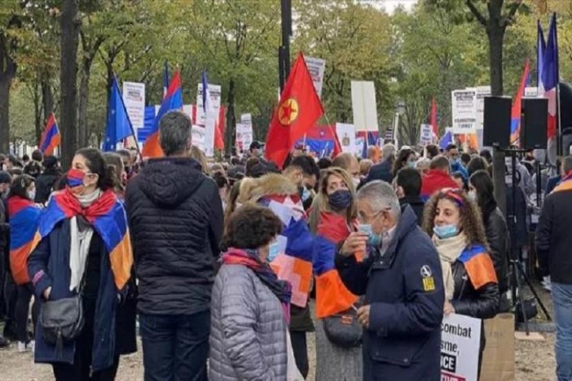 Fransa’daki Ermeni Örgütleri Koordinasyon Konseyi (CCAF) tarafından organize edilen protestoda, Invalides Meydanı'nda toplanan göstericiler, Azerbaycan’ın Ermenistan'ın saldırılarına karşı meşru müdafaa hakkını kullanmasını protesto etti.