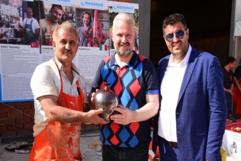 Uluslararası organizasyon sırasında Bornova Kaymakamı Fatih Girgin ile birlikte önlüğünü giyerek çömlek tezgahının başına geçen Menemen Belediye Başkan Vekili Aydın Pehlivan, ilgi odağı oldu. Menemenin bütün değerlerini geleceğe taşımak gibi önemli bir misyonu üstelendiklerini belirten Belediye Başkan Vekili Aydın Pehlivan, “Sanat toplumların oluşturdukları kültürü en iyi biriktirme yoludur. Kültürü de yeni kuşaklara ve diğer insanlara aktarmanın yolu da sanattan geçmektedir. Menemen tarihi birikimleri ve değerleriyle önemli bir kenttir. Menemen’in önemli kuruluşlarından biri olan Menemen Şahinler Makine’nın bu konuda yaptığı çalışmalar ve destekler gerçekten takdire şayan. Böylesi uluslararası düzeyde etkinliğe ev sahipliği yaptıkları için Menemen Şahinler Makine Yönetim Kurulu Başkanı Mustafa Şahin ile birlikte Dünya Şampiyonu Çömlek Ustamız Ahmet Taşhomcu ve emeği geçen herkese teşekkür ediyorum. Bugün burada İtalya ve Rusya’dan ülkemizin dört bir yanından çömlek ustaları, ressam ve seramik sanatçıları bulunuyor. Hepsinin yaptığı eserler ve icra ettikleri sanat gerçekten göz alıcı. Emeği geçenlere bir kez daha çok teşekkür ediyorum. İlçemizin değerlerini Türkiye ve dünya ile her fırsatta paylaşmaya çalışıyoruz” dedi.