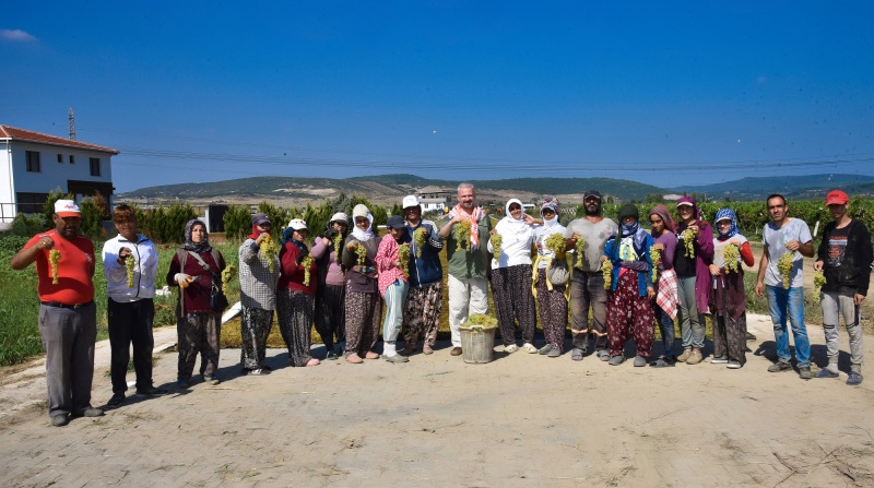Üzüm rekoltesinin Menemen genelinde yaklaşık 24 bin 500 dekar alanda 60 bin ton olarak beklendiğine dikkat çeken Pehlivan, “Bu yıl 160 dekar bağımızın 80 dekarlık alanında sofralık ve kurutmalık olarak iki cins üzümümüz mevcut. Sofralık üzümde hasadımızı bitirdik. Kurutmalık üzümün de hasadını gerçekleştiriyoruz. Titizlikle yürüttüğümüz çalışmalarımızla daha sağlıklı ürün elde etmeyi hedefliyoruz. Diğer 80 dekar alanda ise birinci ürün olarak karakılçık buğdayı, ikinci ürün olarak mısır ekimi gerçekleştirdik. Karakılçıktan 14 ton buğday, 16 ton da saman elde ettik. Tüm çiftçilerimize bol ve bereketli bir hasat sezonu diliyorum” ifadelerini kullandı.