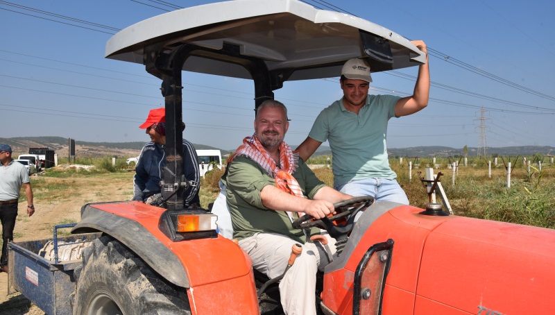 Menemen Belediyesi’ne ait bağlarda gerçekleştirilen üzüm hasadının sürpriz bir konuğu oldu. Türkelli Mahallesi’nde yer alan bağa giren Menemen Belediye Başkan Vekili Aydın Pehlivan, bağbozumuna katıldı. Traktör kullanıp, üzüm kesen Pehlivan, bağda yapılan her işi üstlendi. Renkli görüntülerin yaşandığı hasat sırasında çalışmalar hakkında bilgi alan Başkan Vekili Pehlivan, tarım emekçilerine bol bereketli bir hasat sezonu diledi.