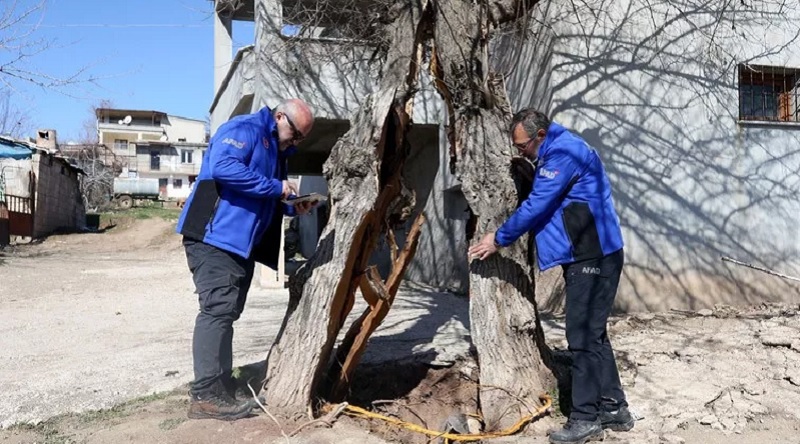 Deprem sonrası evleri incelerken dut ağacını gördüklerini ve şaşırdıklarını anlatan Balım, gövdesi dikine ikiye ayrılan ağaçtaki yarığın genişliğinin 1 metreye ulaştığını dile getirdi.