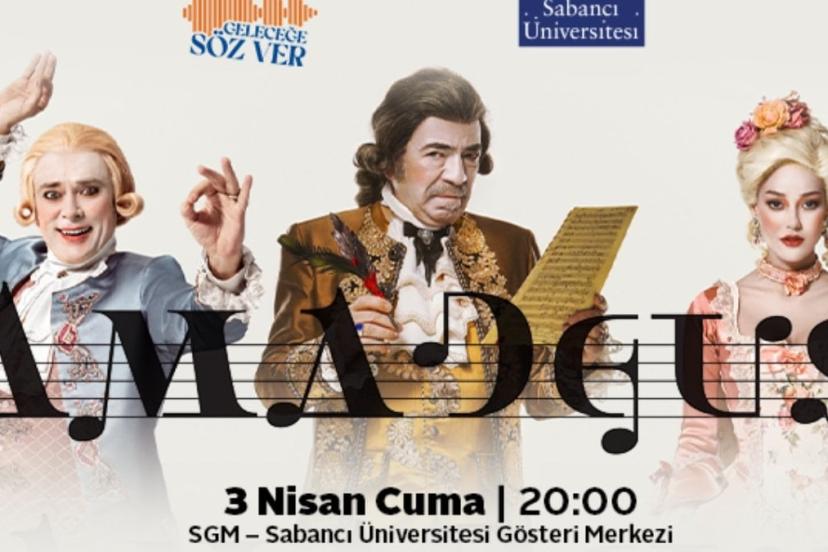 Sabancı Üniversitesi Gösteri Merkezi’nde ayın programı 3 Nisan akşamı, usta yönetmen Işıl Kasapoğlu’nun Çolpan İlhan-Sadri Alışık Tiyatrosu ve Piu Entertainment ortak yapımı olan “Amadeus” oyunuyla başlıyor. Bu eşsiz prodüksiyonda izleyici, Mozart’ın dehası ve müziği ile Salieri’nin kıskançlık ve takıntılarının iç içe geçtiği dramatik ve çarpıcı bir sahne deneyimine davet ediliyor.