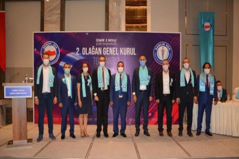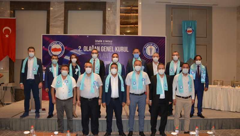 İzmir 2 No’lu Şubesi’nin Olağan Genel Kurulu’na Sağlık-Sen Genel Başkan Yardımcıları Mahmut Faruk Doğan ve Yusuf Dural’ın yanı sıra Aydın Şube Başkanı Abdülbaki Karaer, Ankara Üniversiteler Şube Başkanı Ercan Öztürk, Kayseri Şube Başkanı Hakan Keser, Kırşehir Şube Başkanı Yasin Yücesan, Nevşehir Şube Başkanı Hakan Gündüzpolat ve Sivas Şube Başkanı Muhittin Musaoğlu katıldı.