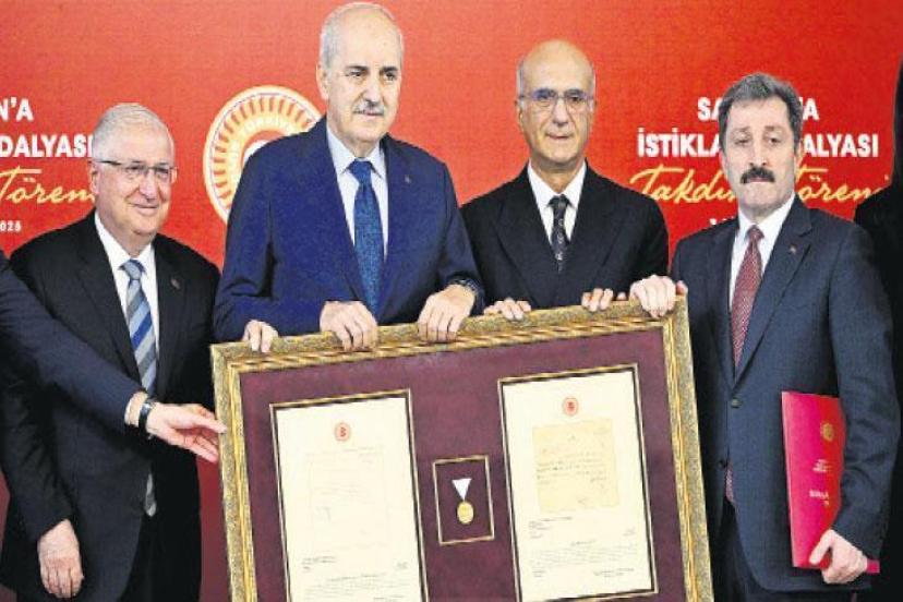 TBMM’de düzenlenen “İstiklal Madalyası Takdim Töreni”yle Samsun, 101 yıl sonra İstiklal Madalyası’na kavuştu. Meclis Şeref Holü’nde düzenlenen törende konuşan TBMM Başkanı Numan Kurtulmuş, Samsun’un, istiklal ateşinin yakıldığı en önemli merkezlerden biri olduğunun altını çizerek 1924 yılında, ilk Meclis Başkanı ve o dönem Cumhurbaşkanı Mustafa Kemal Atatürk tarafından tevdi edilen beratın 101 yıl sonra verilmesinin kendileri için de fevkalade önemli ve anlamlı olduğunu belirtti. Bir asır evvelki tablonun neredeyse birebir benzerinin yaşandığı bir dönemden geçildiğini dile getiren Kurtulmuş, “İç cephemizi tahkim etmek, içerideki farklılıklarımızı bir zenginlik olarak görmek, milli hedefler etrafında bütünleşme becerisini gösterebilmek herhalde en önemli özelliğimiz olmalıdır” dedi. Kurtulmuş, Terörsüz Türkiye sürecine ilişkin de “Şundan emin olunuz ki bu süreç içerisinde her bir şehidimizin hatırası ve acısı yolumuzu aydınlatan bir ışık olacak, şehitlerimizin hatırasına sonuna kadar saygılı olunacaktır” ifadelerini kullandı.