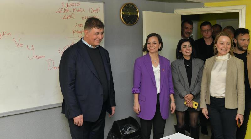 CHP İzmir Büyükşehir Belediye Başkan Adayı Dr. Cemil Tugay, İzmir Şanlıurfalılar Federasyonu, İzmir Bingöllüler Derneği ve Defne Eğitim ve Yaşam Derneği’ni ziyaret etti. Derneklerin başkanları, yönetim kurulları ve üyeleriyle bir araya gelen Tugay’a, Konak Belediye Başkan Adayı Nilüfer Mutlu, Bayraklı Belediye Başkan Adayı İrfan Önal, Bornova Belediye Başkan Adayı Ömer Eşki ve Karabağlar Belediye Başkan Adayı Helil İnay Kınay, CHP Konak İlçe Başkanı Ozan Ali İlgazi ve partililer eşlik etti. Şanlıurfalılar, Cemil Tugay’a üzerinde adının yazıldığı bir tepsi çiğköfte ile sürpriz yaptı. Tugay’a, Şanlıurfa’nın arkeolojik SİT Alanı Göbeklitepe’nin fotoğrafı hediye edildi.
