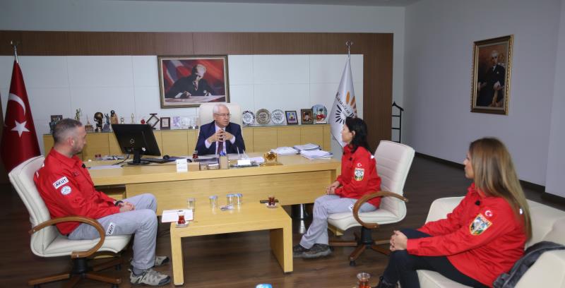 Başkan Selvitopu’na teşekkür ziyareti gerçekleştiren gönüllüler, yaşanan son depremlere dikkat çektiler.
