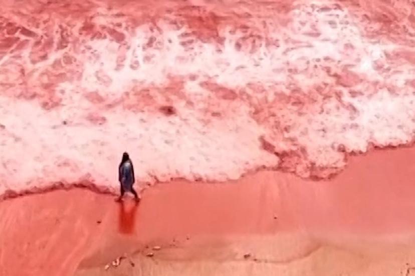Video. Hormuz Adası'ndaki yağış, demirce zengin toprak akıntısının kıyı ve suları kırmızıya boyamasıyla Kırmızı Plaj değişti; olay internette büyük ilgi gördü.