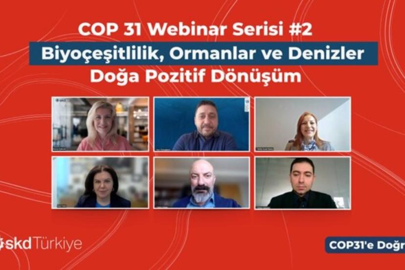 Bu gelişmeler doğrultusunda SKD Türkiye, “COP31 Webinar Serisi”nin ikinci oturumunu 27 Mart’ta “Biyoçeşitlilik, Ormanlar ve Denizler: Doğa Pozitif Dönüşüm” temasıyla gerçekleştirdi. Webinarda Türkiye’nin doğa risk profili; ormansızlaşma, arazi bozulumu, deniz ekosistemleri üzerindeki baskı ve su havzalarının kırılganlığı gibi başlıklar üzerinden ele alınırken, doğa kaybının operasyonel, finansal ve tedarik zinciri risklerine etkileri ile TNFD ve LEAP yaklaşımı çerçevesinde gelişen yeni finansman ve strateji modelleri değerlendirildi.